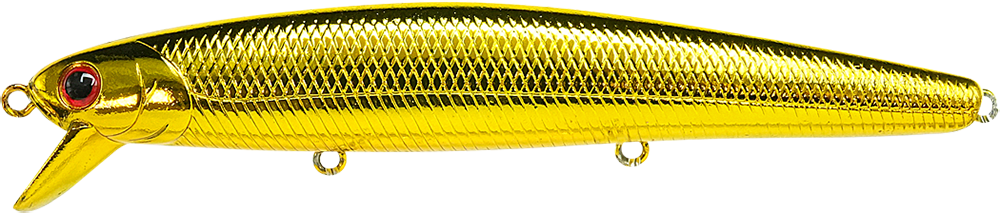 ![]() | SW-FM110-608KLGN | SW FlashMinnow 110 KL Golden Nugget | 4-1/2"(110mm) | 5/8oz(16.5g) | Suspending / 1-2ft(0.5m) | #6, #6, #6 | 802897056081 |