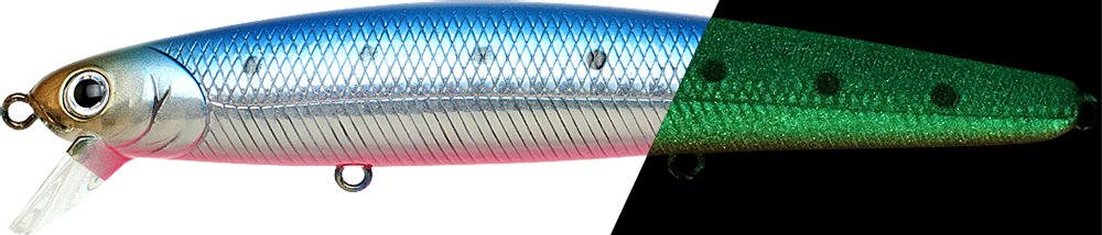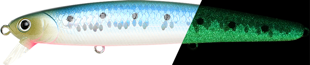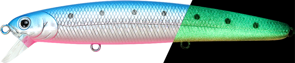 ![]() | SW-FM110-621SGBPS | SW FlashMinnow 110 Super Glow Blue-Pink Sardine | 4-1/2"(110mm) | 5/8oz(16.5g) | Suspending / 1-2ft(0.5m) | #6, #6, #6 | 802897056210 |