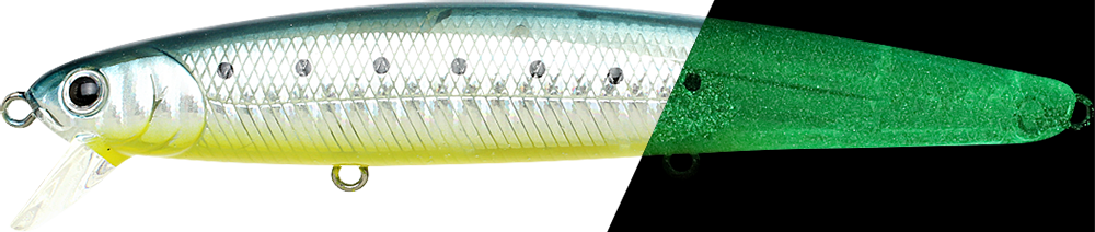 ![]() | SW-FM110-798SGEG | SW FlashMinnow 110 Super Glow Electric Grunion | 4-1/2"(110mm) | 5/8oz(16.5g) | Suspending / 1-2ft(0.5m) | #6, #6, #6 | 802897057989 |