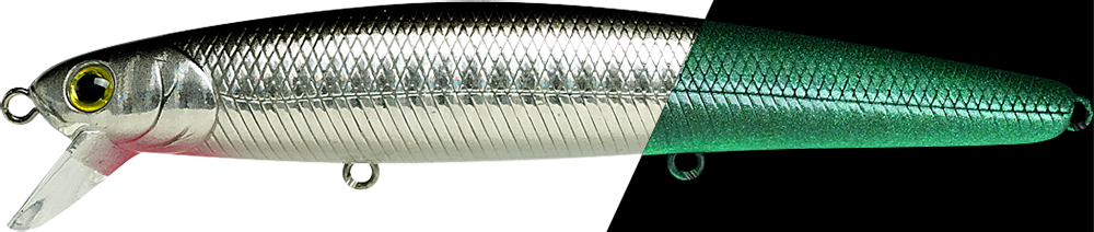 ![]() | SW-FM110-728SGSRD | SW FlashMinnow 110 Super Glow Sardine | 4-1/2"(110mm) | 5/8oz(16.5g) | Suspending / 1-2ft(0.5m) | #6, #6, #6 | 802897057286 |